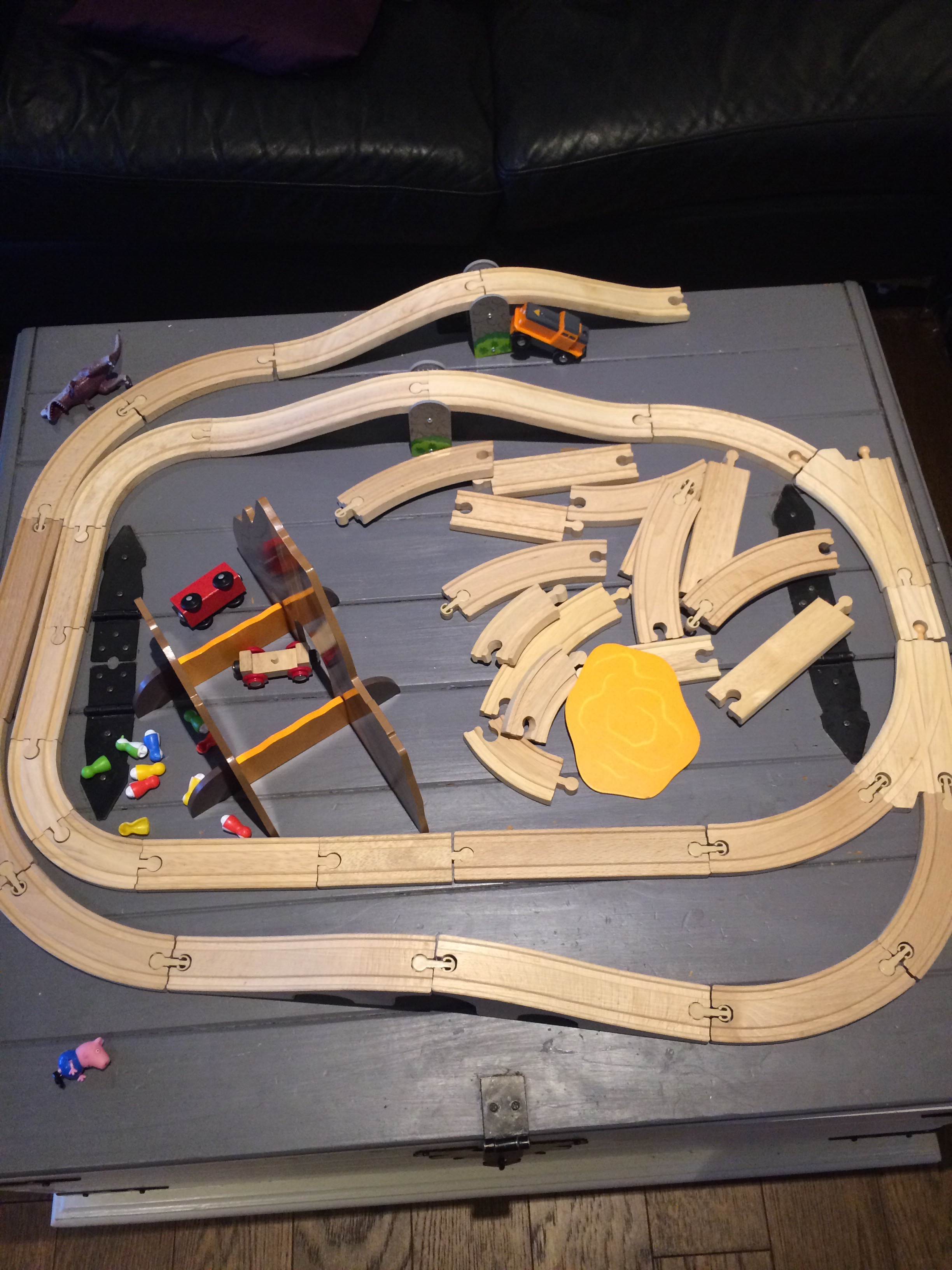 So this was built in 3 session with me laying track whilst He shouted “YESSSS TRAIN!!”