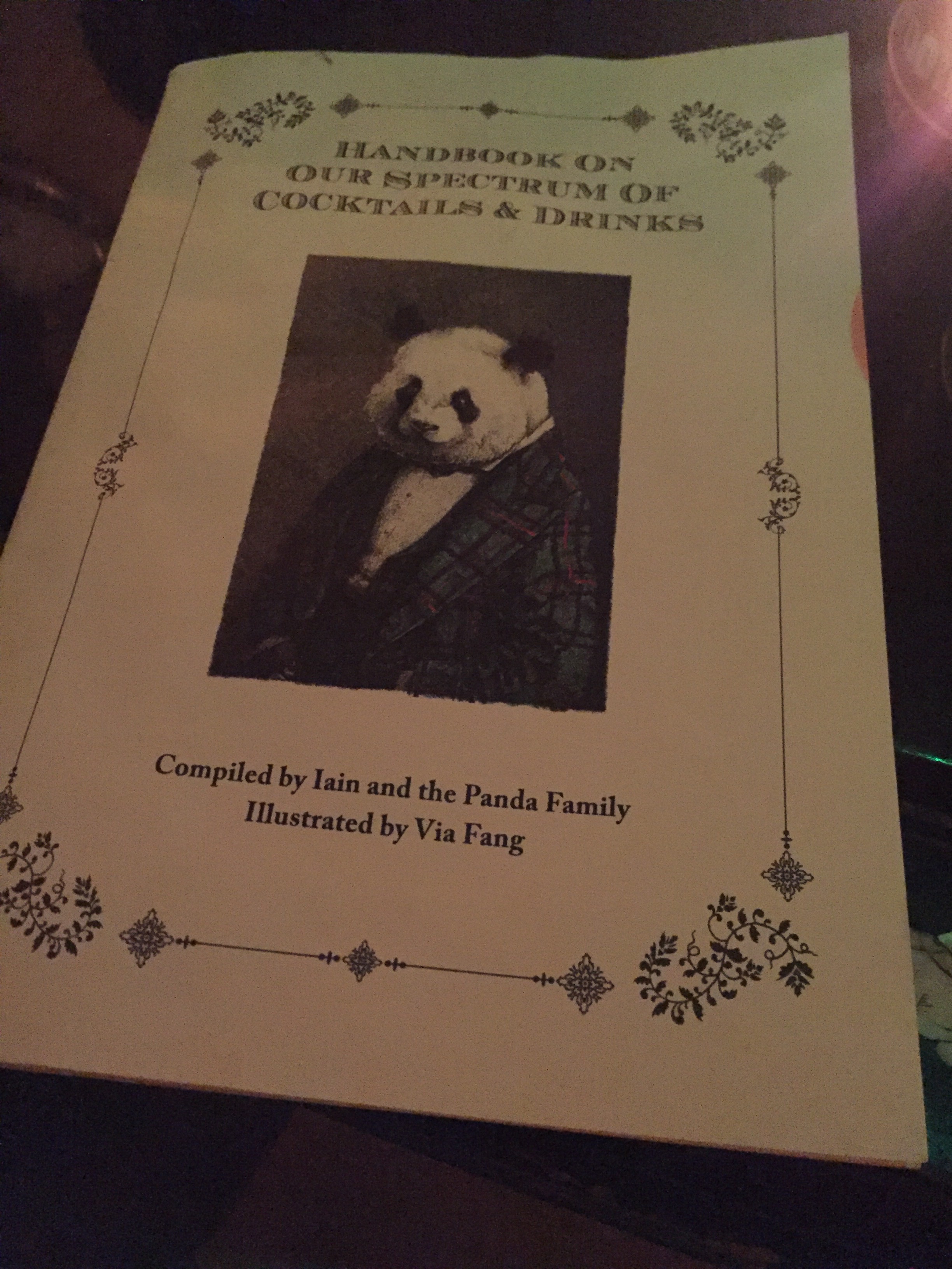 You’re presented with a booklet (above) which lists the Panda family and related drinks. A glass of water and popcorn are given when you sit down, and the whole atmosphere feels like you have stepped back into the prohibition era, and this is an exclusive membership club.