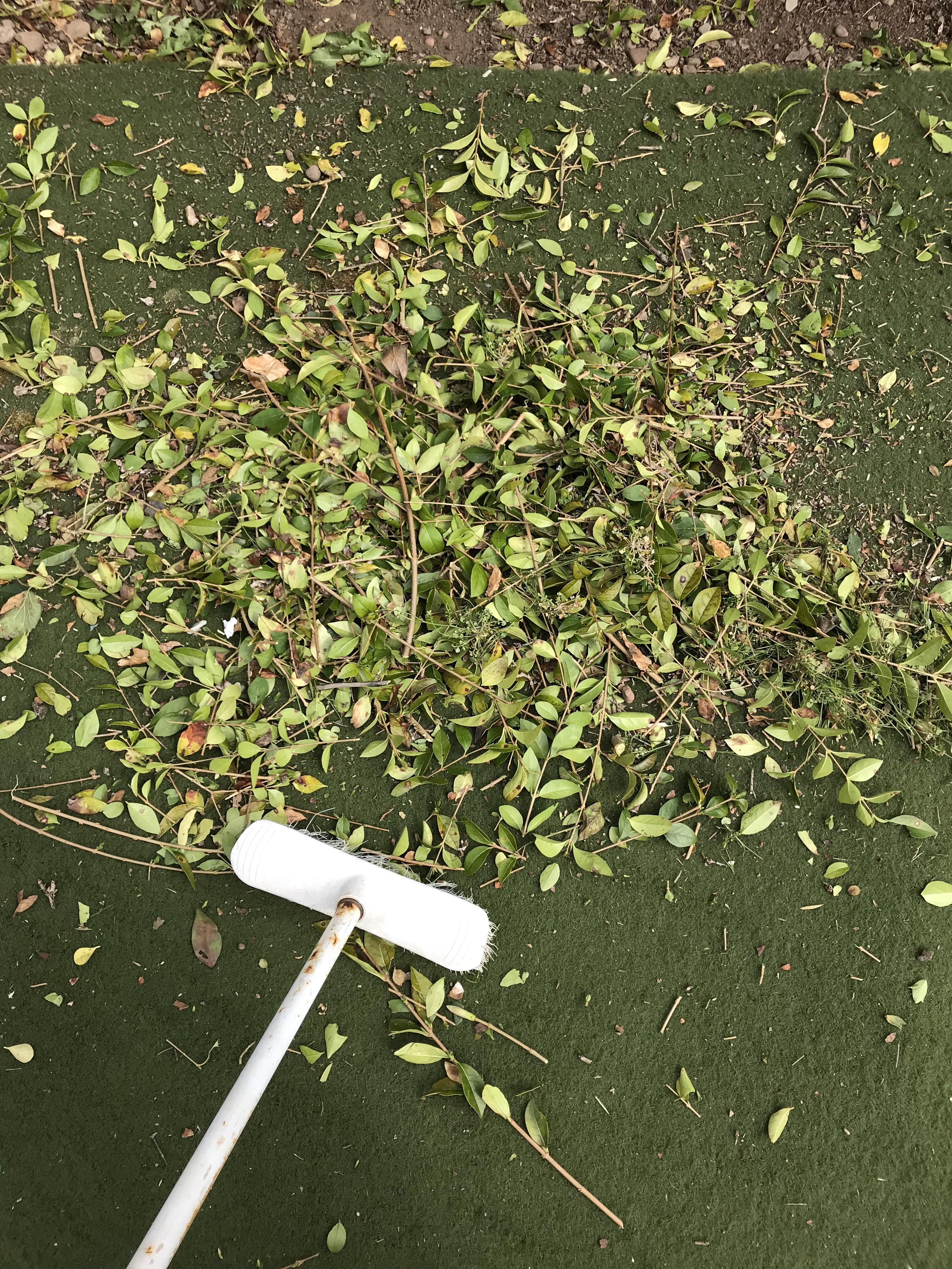 You can see the amazing state of the AstroTurf. We’re renting so not too much we can do about it but a future plan is to rip it up and then flatten the earth and re-lay it with better underlay. The whole turf has small weeds constantly poking through.