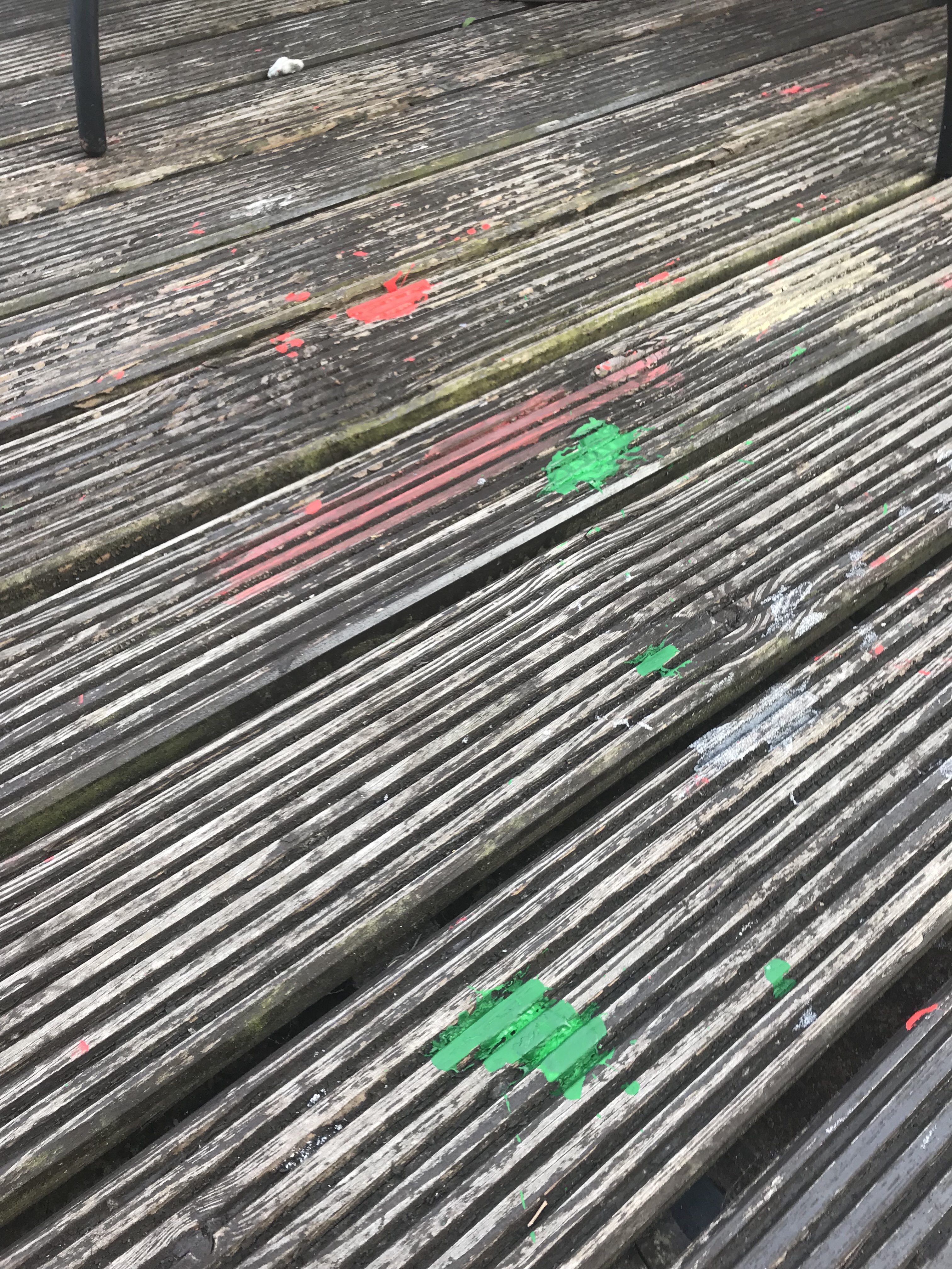Ben wanted to paint rocks after nursery for some reason. Zara set him up in the garden, she thought we’d escape the odd drop or something.This was the aftermath…