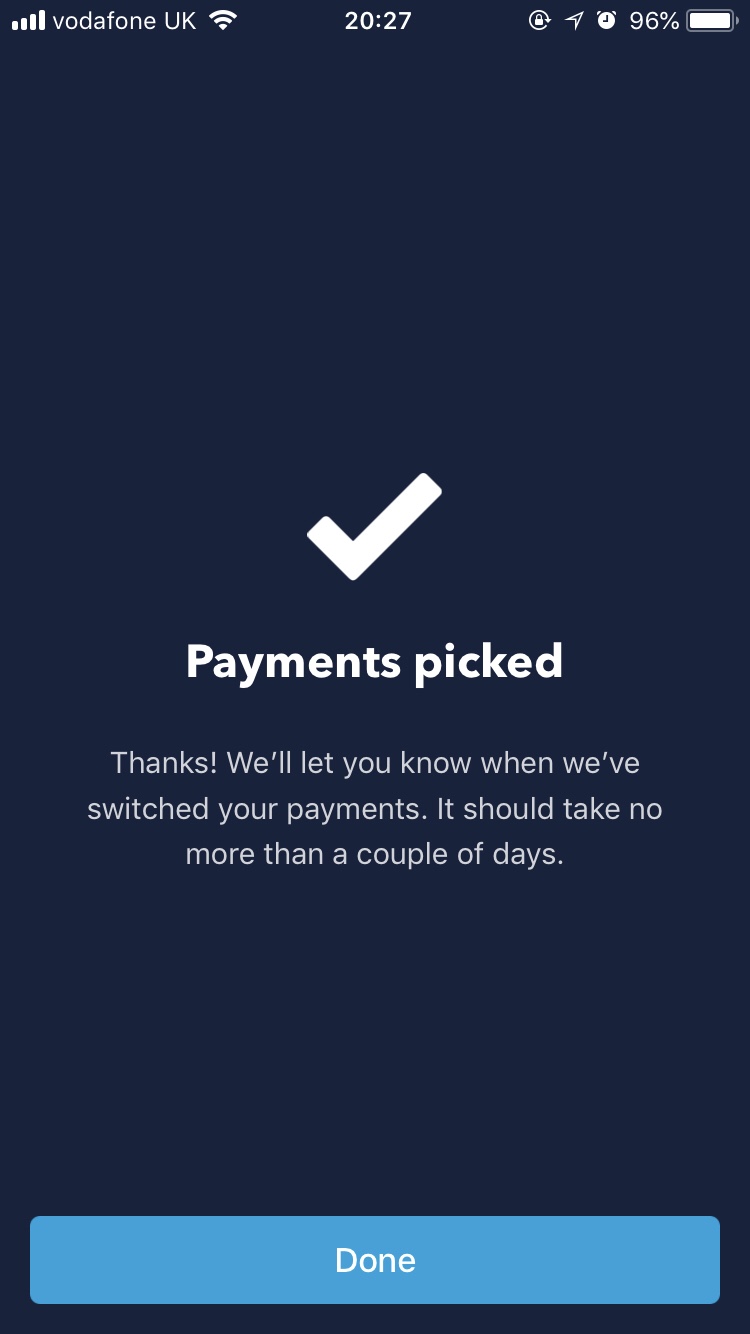 Then I was presented with a list of regular payments I wanted to transfer (I kept them all ticked for ease), I press the button and bam, job done.