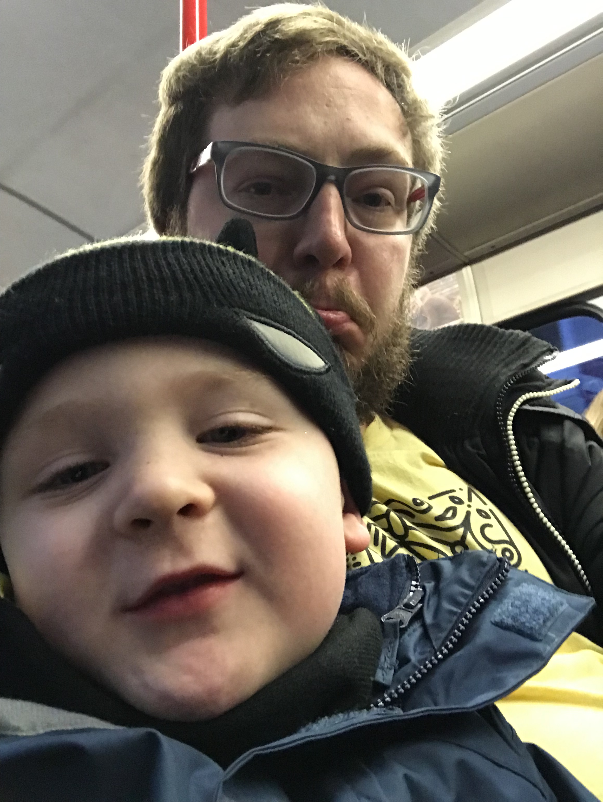 He always smiles for a photo… four minutes later, was napping. I lifted him off the bus like I did when he was tiny. But weighing a lot more. The boy is a weight these days.
