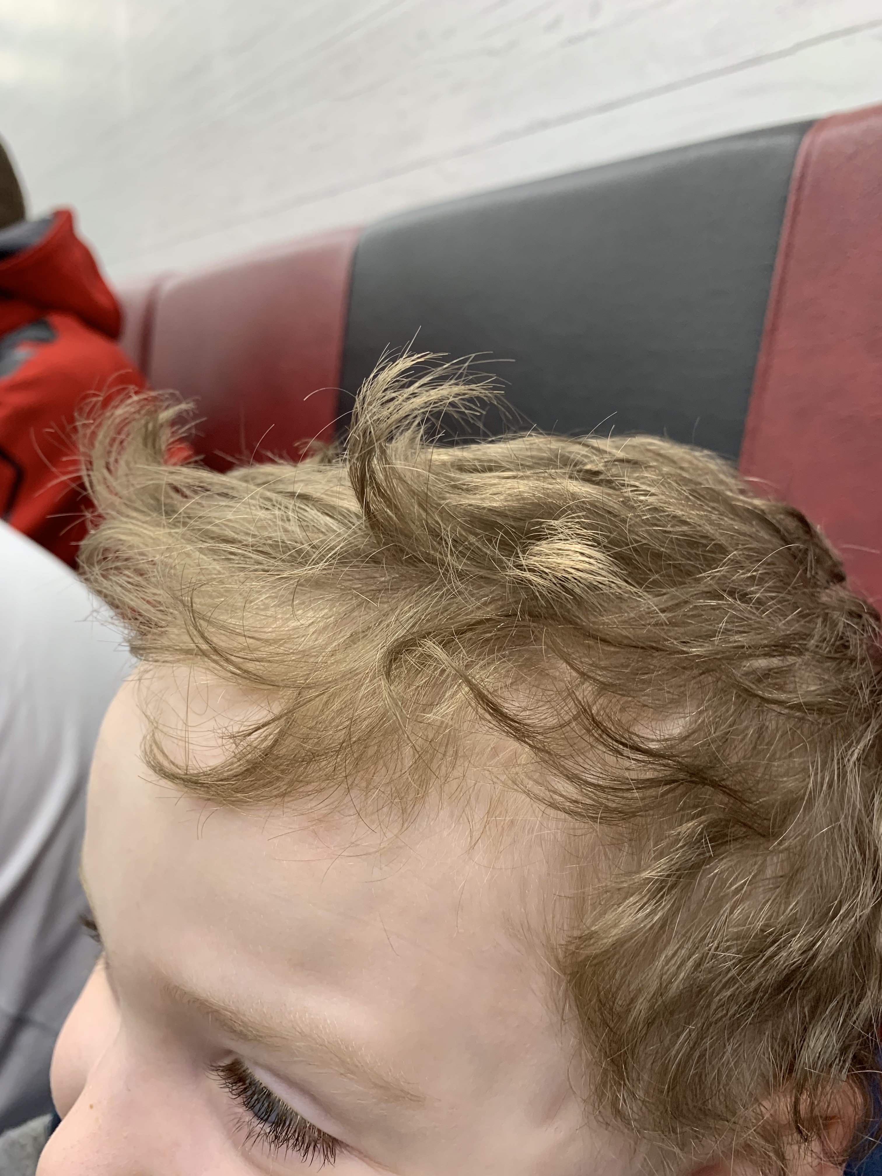 Much like his dad, Bamm-Bamm has hair that grows at a silly rate and ends up with a slight curl. We decided to get it cut after nursery since his sister was getting her hair cut in town.